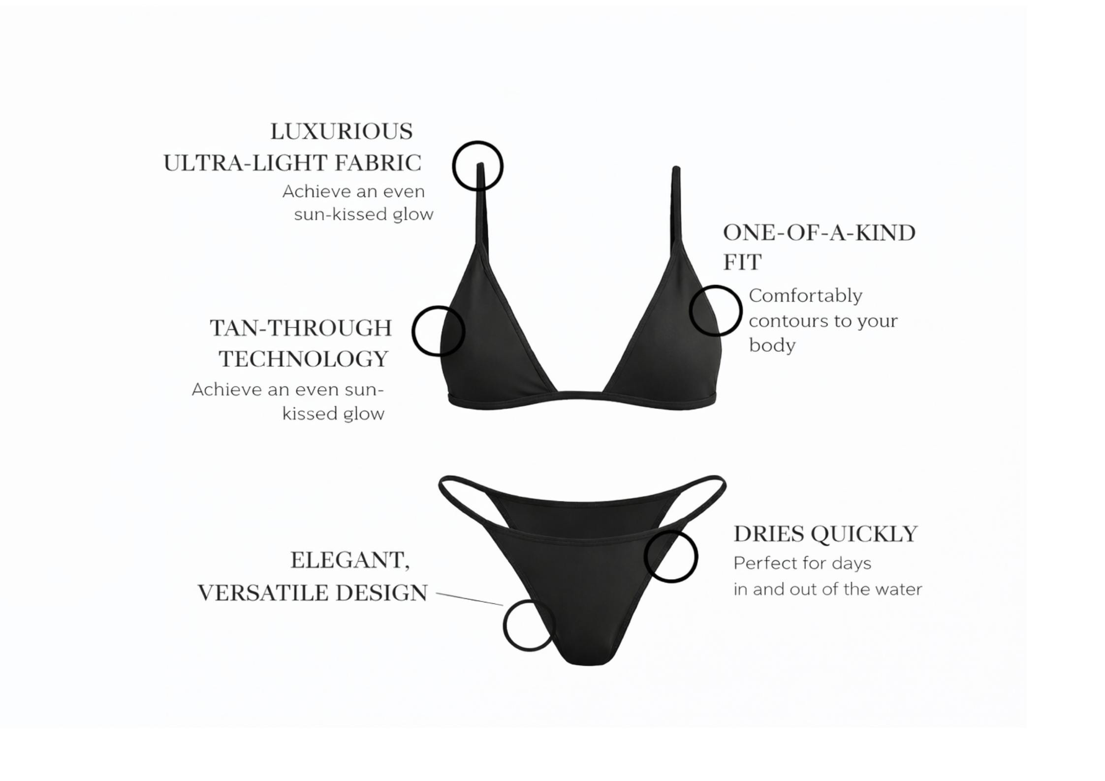 Minimal swimwear designed for an even, natural tan.